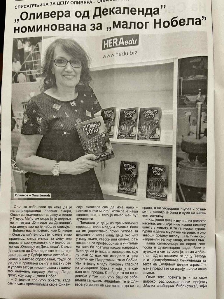 On Friday, October 7, 2022, Olivera Olja Jelkić was presented with the Anne Frank Award, an international award for children's writers ...