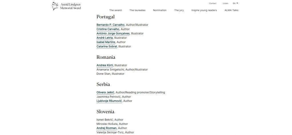 Olivera Olja Jelkic have been nominated for the Astrid Lindgren Memorial Award 2023